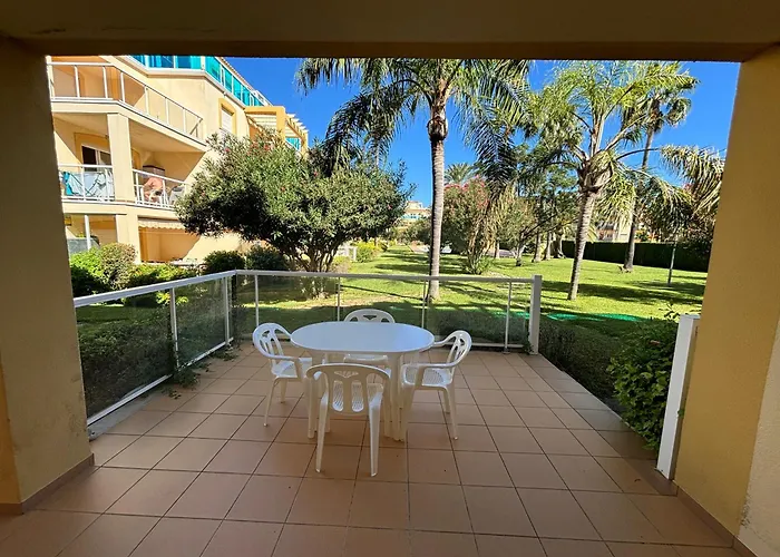 Port promowy w Denii znajduje się 15 min samochodem od Apartamento Dos Dormitorios La Riviera En Planta Baja o powierzchni 60 m^2, natomiast C.C. Les Fonts znajduje się w pobliżu. Ten apartament dysponuje tarasem z widokiem na ogród.